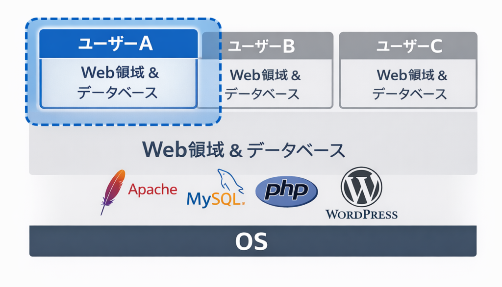 - OS/Apache/PHP は 全員で共用